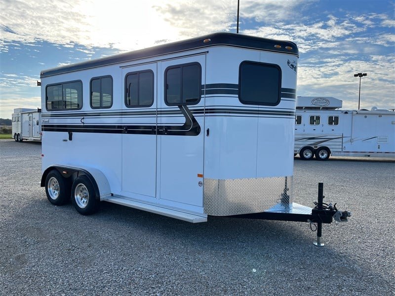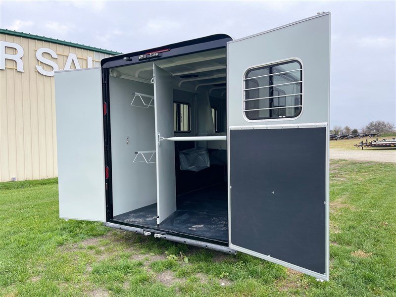 Trailer Details * Galvanized Steel Frame, Wood Floor, Fiberglass Seamless One Piece Roof, & Aluminum Exterior Wall * 20’11” Overall Length * 18’3″ Floor Length * 80″ Width * 7’4″ Inteior Height * (2) 5200# Axles & 4 Wheel Electric Brakes * 2 5/16″ Wedge Lock Coupler * ST225/75R15 ( D) Tires, Aluminun Rims, & Complete Spare Mounted Inside * D.O.T Lighting Horse Area Details: * 44″ Stall Width *” Escape Door * Padding on Bulkhead Walls, Kickwall Pands, & Divider Pads * Floor to Ceiling Insulation * Floor Mats 5/8″ * Triangle Feed Bags * Interior/ Exterior Head Ties * 60/40 Rear Doors GVWR 9900# Empty Weight 4200# Sale Price Does Not Include Tax, Registration Fee, License, Freight, Freight, & Document Fee. We do not take out of State Checks.