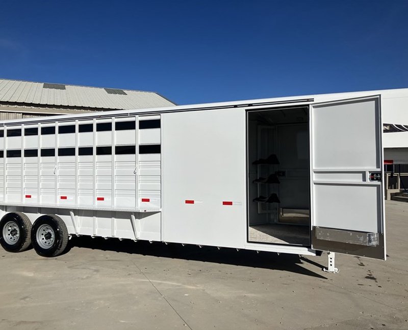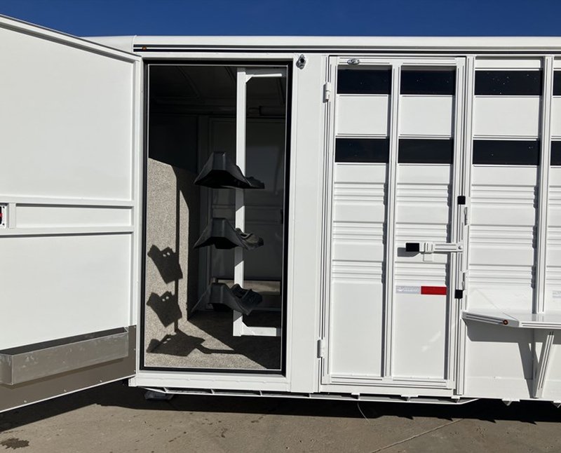 Pinnacle Trailer Sales LLC. 2024 Titan 24′ Stock Combo. Features include 2-7k Axles, Tackroom with doors on both sides, bridal hooks, 3 swing out saddle racks on both sides, escape door on drivers side, Big divider down the middle, Rear slider gate, plexi glass, and smooth rubber boards. Ready to haul! ZERO DOWN financing available! Nationwide delivery! Trades welcome! Call our sales team today Email-info@dynamichorsetrailers.com or text Email-info@dynamichorsetrailers.com Prices do not include tax or Dealer We believe the information on this site to be accurate. Any errors or discrepancies are unintentional. Please verify all information prior to investment.