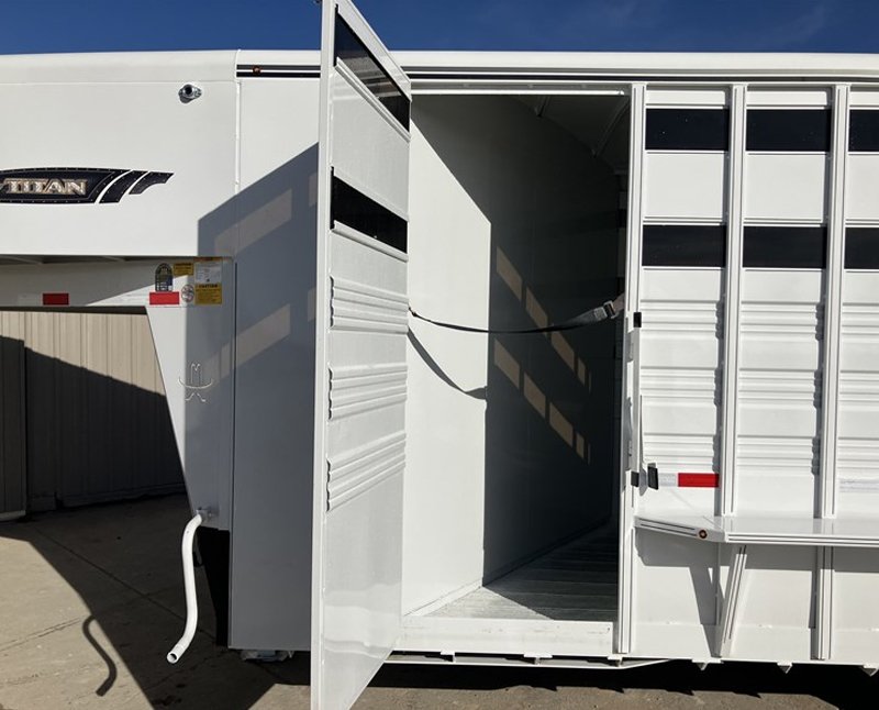 Pinnacle Trailer Sales LLC. Titan 20′ Stock Combo GN. Features include 2-7k axles, Tackroom with bridal hooks and 3 swing out saddle racks, side escape door, plexi glass, Big Divider down the middle, Rear slider gate, and Smooth Rubber boards. Ready to haul! ZERO DOWN financing available! Nationwide delivery! Trades welcome! Call our sales team today Email-info@dynamichorsetrailers.com or text Email-info@dynamichorsetrailers.com Prices do not include tax or Dealer Handling fee of We believe the information on this site to be accurate. Any errors or discrepancies are unintentional. Please verify all information prior to investment.